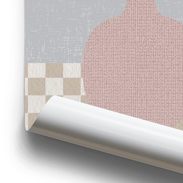 Buy this flower art Minimalist retro still live with leaves in a vase. Earthy tints, pink, beige, white and grey blue by Dina Dankers on canvas, ArtFrame, poster and wallpaper, printed on demand in high quality.