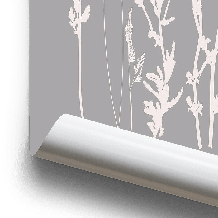 Modern Botanical Art. Flowers, plants, herbs and grasses in grey and white no. 2