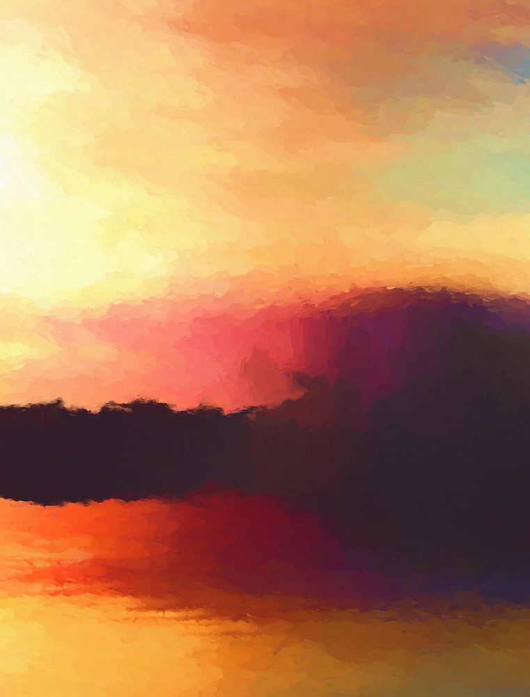 Buy this landscape artwork Mountain at dusk by Angel Estevez on canvas, ArtFrame, poster and wallpaper, printed on demand in high quality.