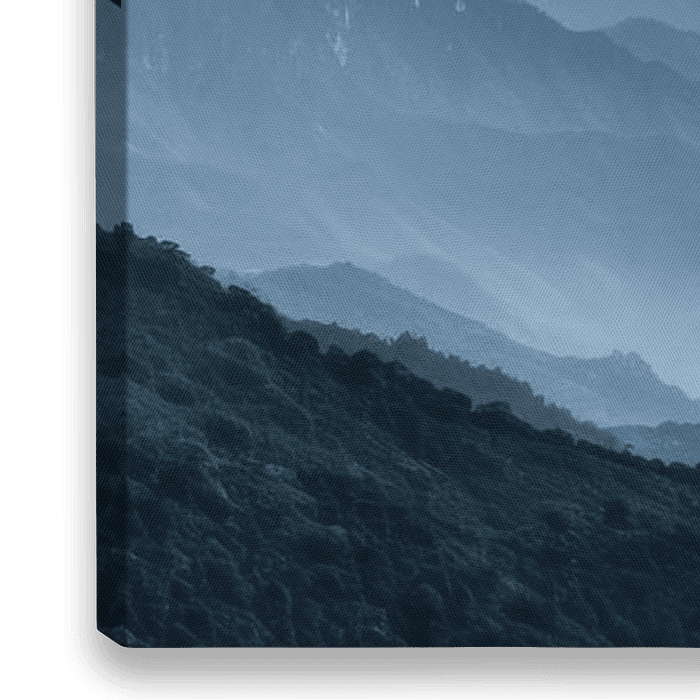 This impressive picture shows a series of mountains shrouded in soft shades of blue and grey in the morning mist. The delicate contours of the peaks and the calming colour palette create a peaceful, almost meditative atmosphere. Perfect for nature lovers and outdoor enthusiasts, this artwork brings the sublime beauty of the mountains…