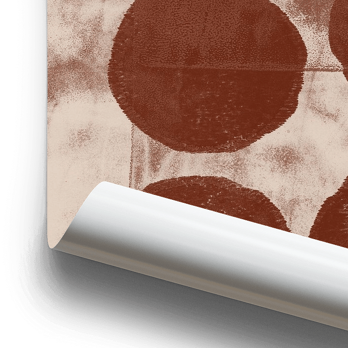 Organic and geometric shapes in warm terracotta, rusty brown and soft neutral cream white.