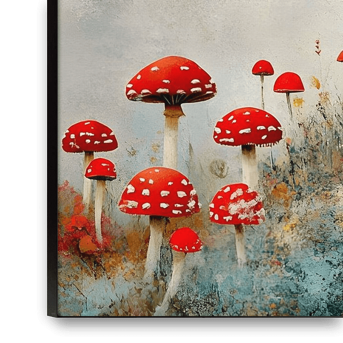 Buy this landscape artwork The churches in the toadstool forest by Heike Hultsch on canvas, ArtFrame, poster and wallpaper, printed on demand in high quality.