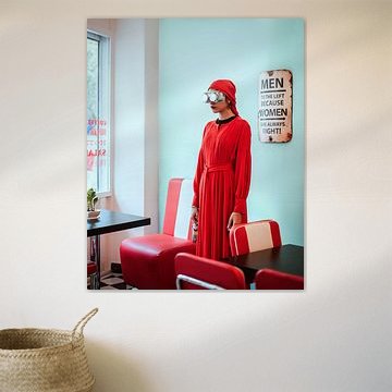 Redheaded girl waving with dress by Cindy Van den Broecke