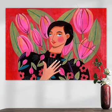 Modern Abstract Woman with Tulips by Caroline Bonne Müller